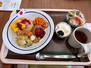 お皿にオムライス、エビフライ、グラタンなどなどみんなが大好きと思うものがたくさんのっていました!